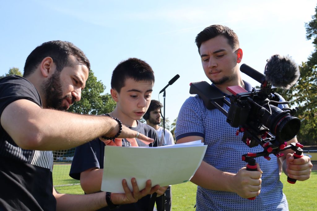 Du lernst, wie man mit der Kamera umgeht, Regie führt, Ton aufnimmt oder Licht setzt – alles mit professioneller Unterstützung.